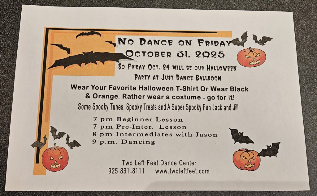 You may also register in person the first night. Any questions call Stephanie (Two Left Feet Dance Center) at (925) 831-8111.